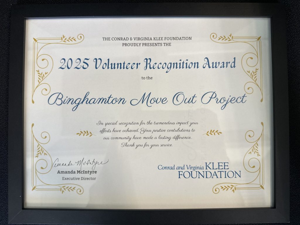 Move Out Project named 2024 Community Advocate of the Year by the Greater Binghamton Chamber of Commerce